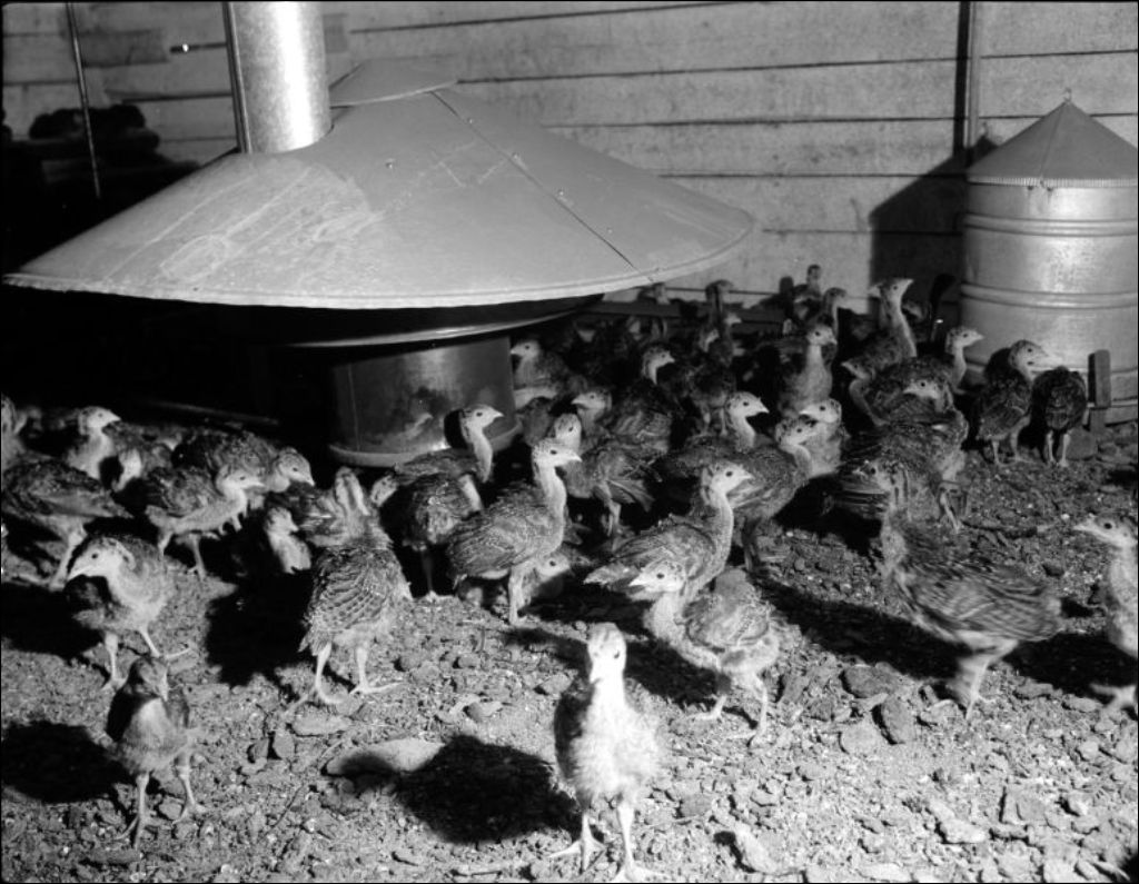 Dindonneaux de 10 semaines dans une éleveuse à l' huile à Valcartier