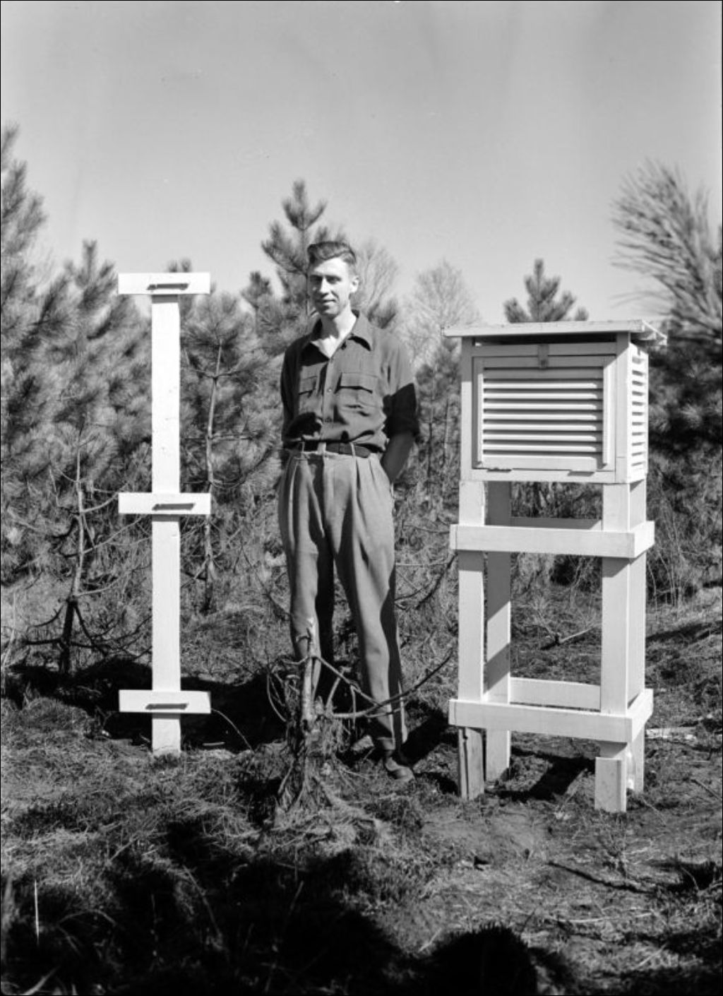 Effets du froid sur le pin rouge à Valcartier, 1947, Archives nationales à Québec, Fonds Ministère de la Culture et des Communications, (03Q,E6,S7,SS1,D2,P36460), R. Pomerleau.