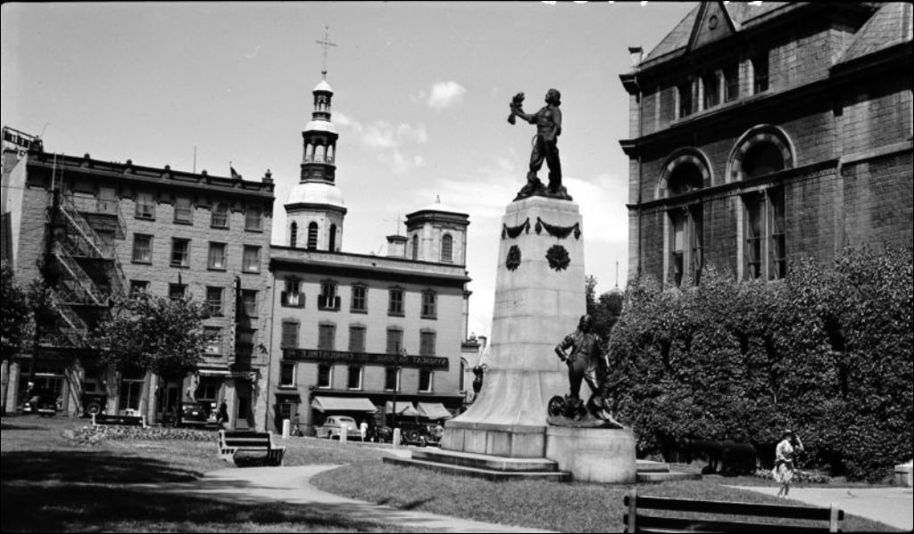 Le monument Louis Hébert à Québec, 1942, Archives nationales à Québec, Fonds Ministère de la Culture et des Communications, (03Q,E6,S7,SS1,D2,P36514), Léopold Arcand.