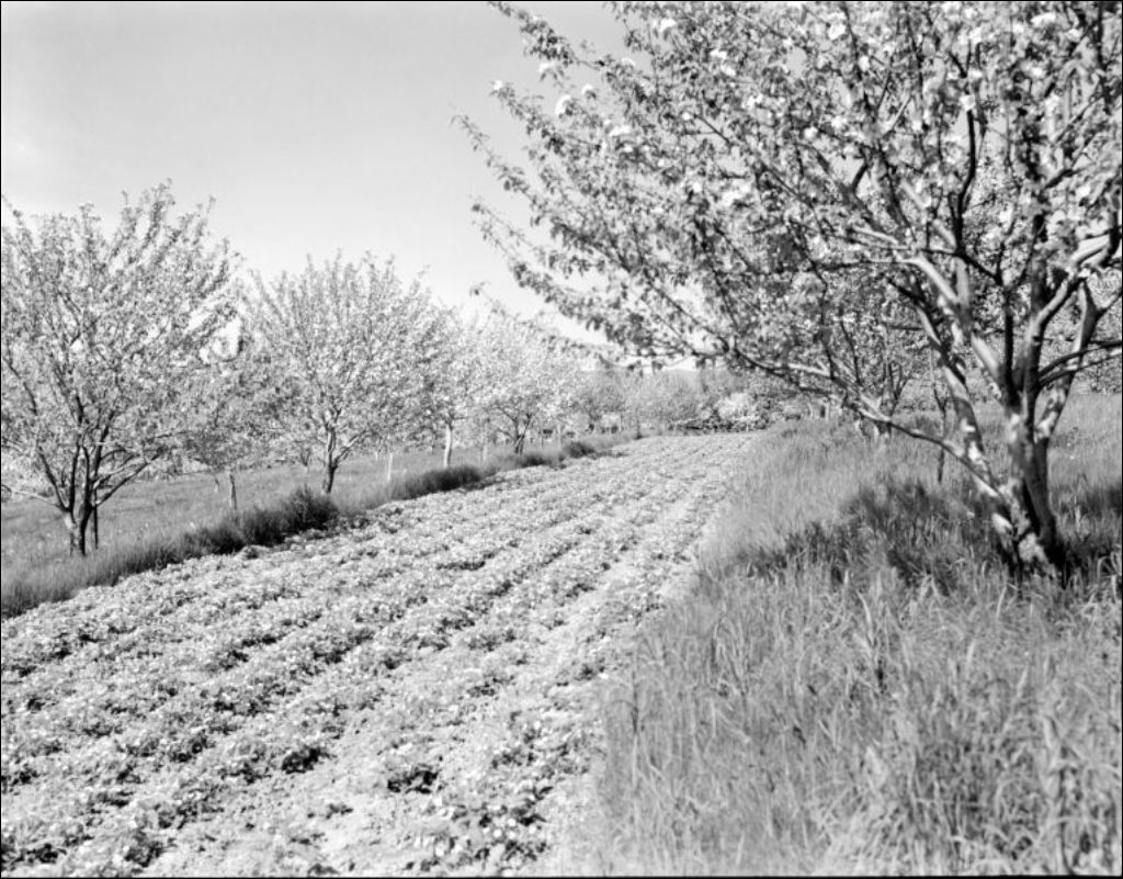 Verger et plants de fraisiers à Sainte-Famille sur l'île d'Orléans