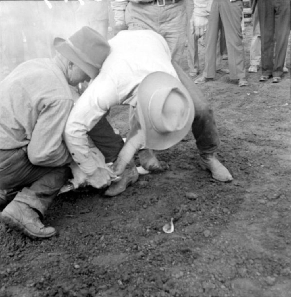 Marquage des animaux au McIntyre Ranch en Alberta, 1947, Archives nationales à Québec, Fonds Ministère de la Culture et des Communications, (03Q,E6,S7,SS1,D2,P36917), Auguste Scott.