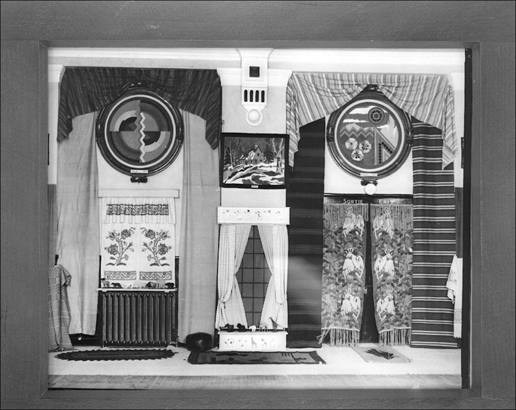 Exposition à l'ouverture de l'École des Arts domestiques, alors École de l'art paysan, 1930, Archives nationales à Québec, Fonds Ministère de la Culture et des Communications, (03Q,E6,S7,SS1,D2,P3701), Raymond Audet.