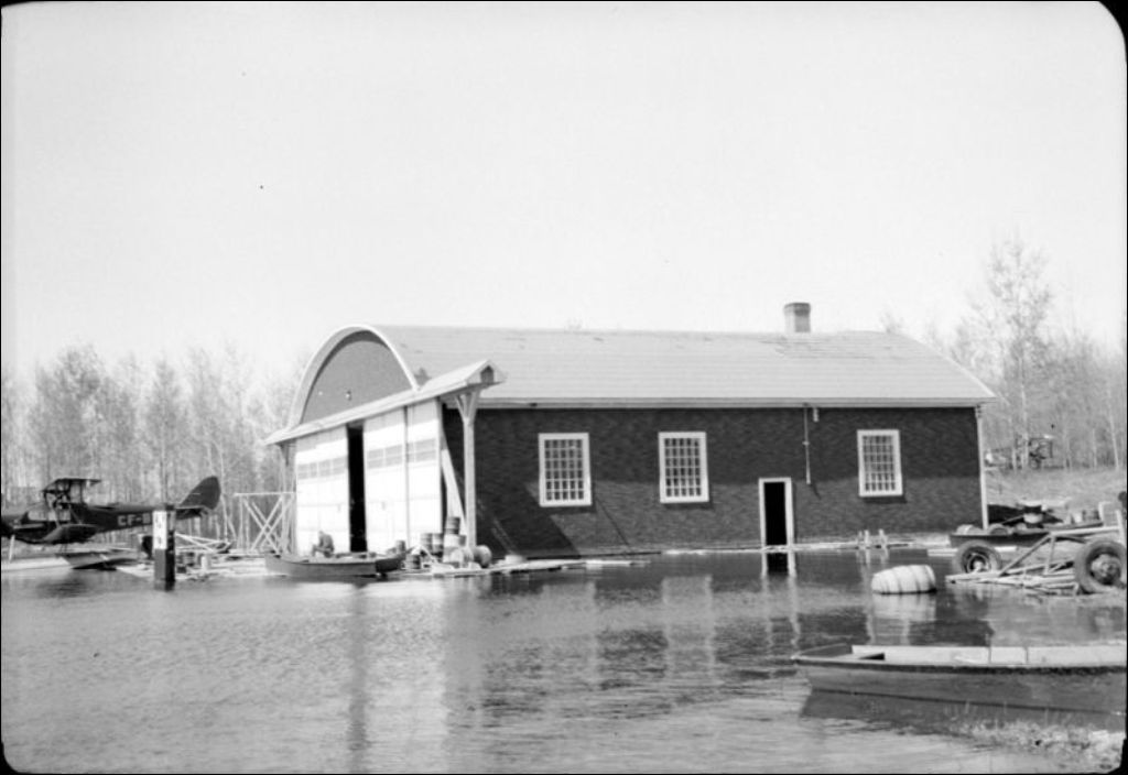 Inondation de juin 1947, hangar de Fecteau inondé, transport aérien à Senneterre