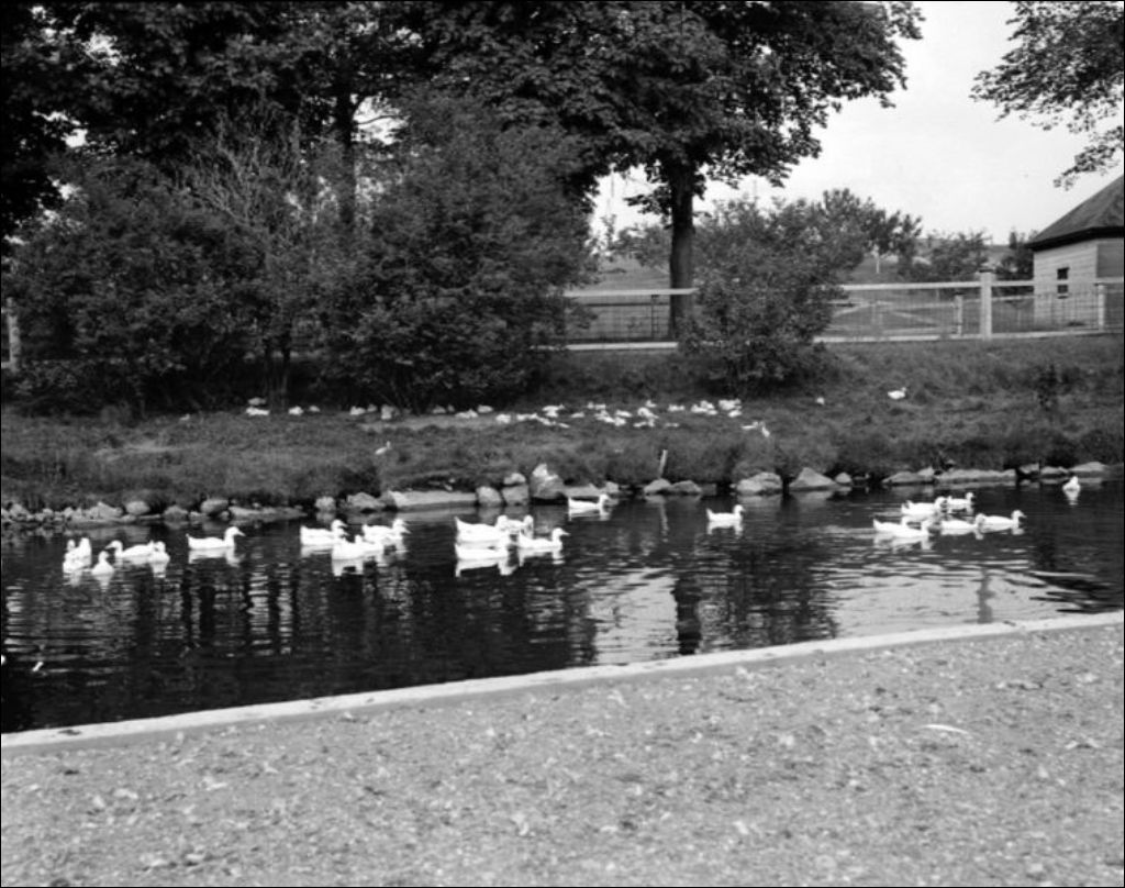 Étang aux canards, établissement des SS. de Notre-Dame-du-Perpétuel-Secours à Saint-Damien, comté de Bellechasse, 1947, Archives nationales à Québec, Fonds Ministère de la Culture et des Communications, (03Q,E6,S7,SS1,D2,P37269), J.W. Michaud.