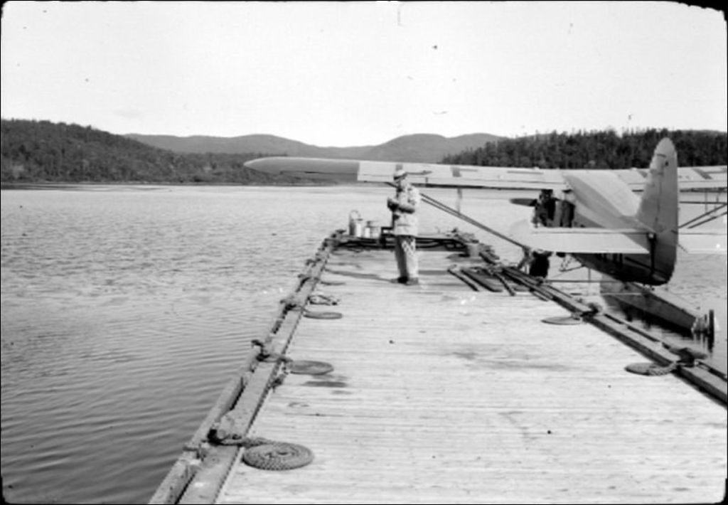 T.L. Tanton at dock, aeroplane base, Lac-des-Rapides, 1947, Archives nationales à Québec, Fonds Ministère de la Culture et des Communications, (03Q,E6,S7,SS1,D2,P37770), I.W. Jones.