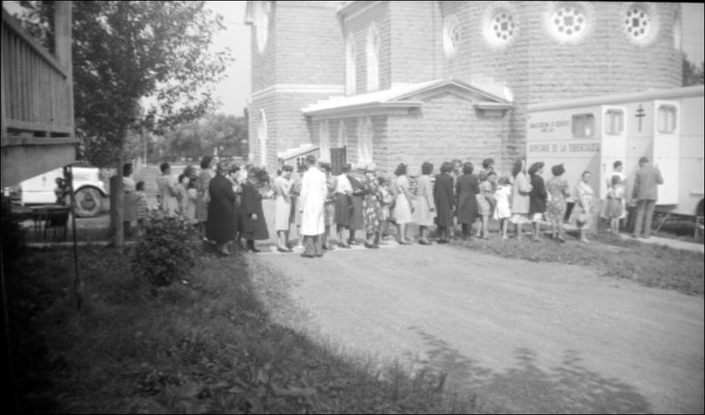 Clinique ambulante anti-tuberculeuse à Val-Brillant, 1947, Archives nationales à Québec, Fonds Ministère de la Culture et des Communications, (03Q,E6,S7,SS1,D2,P37986), L. Camirand.