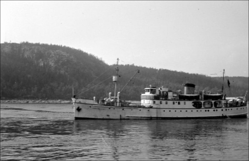 Le navire Jean Brillant arrivant à Baie-Comeau, 1947, Archives nationales à Québec, Fonds Ministère de la Culture et des Communications, (03Q,E6,S7,SS1,D2,P38074), A.O. Dufresne.