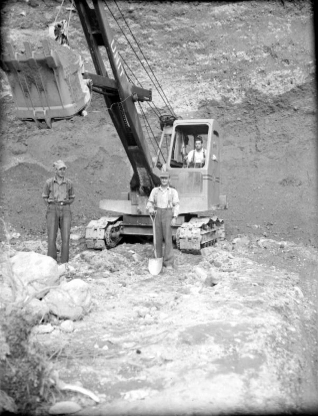 Pelles mécaniques en service en Abitibi, 1947, Archives nationales à Québec, Fonds Ministère de la Culture et des Communications, (03Q,E6,S7,SS1,D2,P38159), René Tremblay.