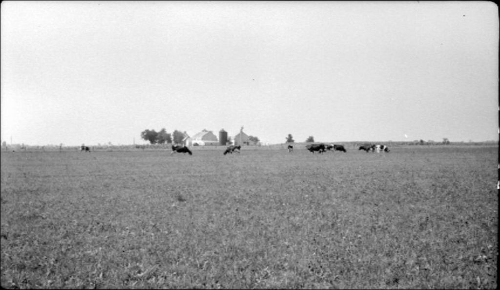 Bâtiments de ferme et un troupeau de vaches Holstein à Varennes
