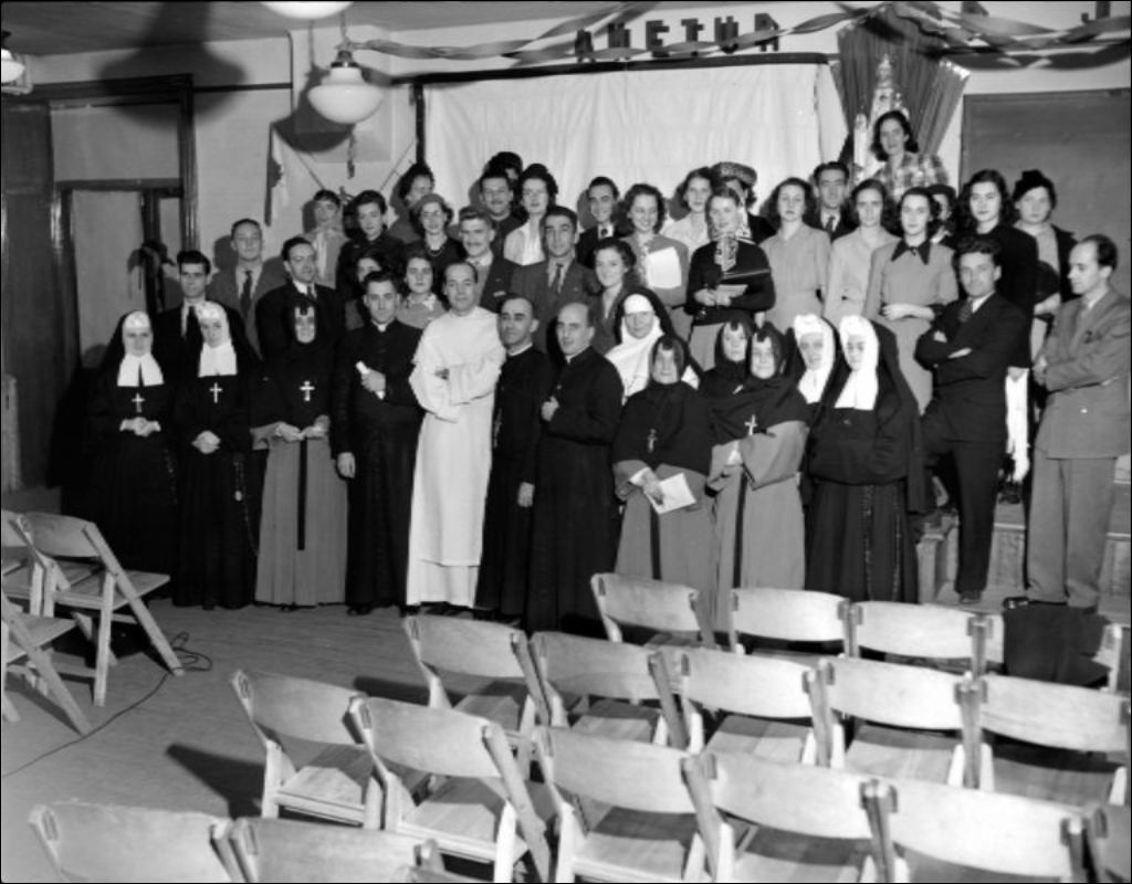 Groupe d'étudiants du Service social visitant l'école Saint-Charles, 1947, Archives nationales à Québec, Fonds Ministère de la Culture et des Communications, (03Q,E6,S7,SS1,D2,P38721), Neuville Bazin.