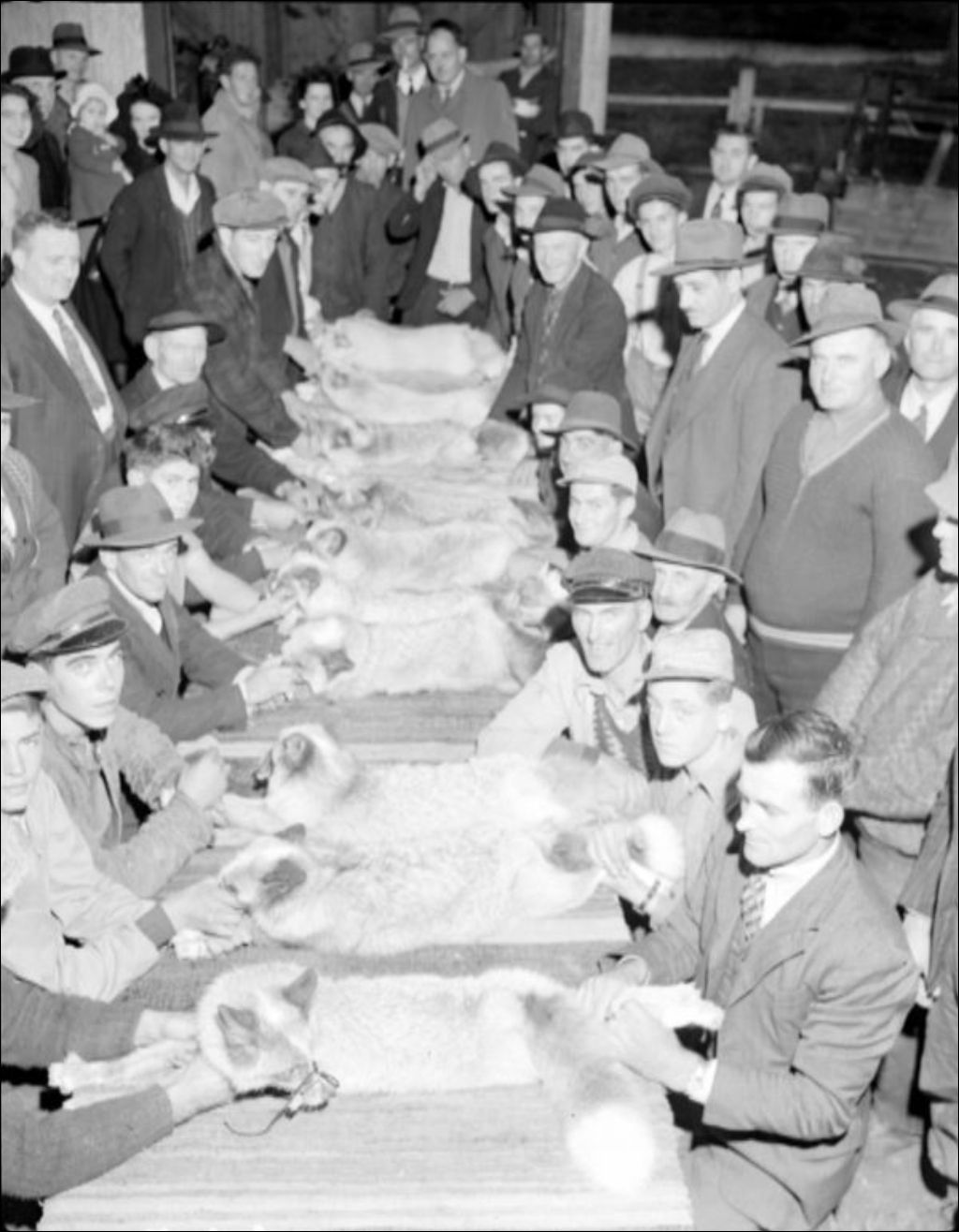 Jugement d'un groupe de jeunes renards mâles platines à Saint-Édouard-de-Lotbinière