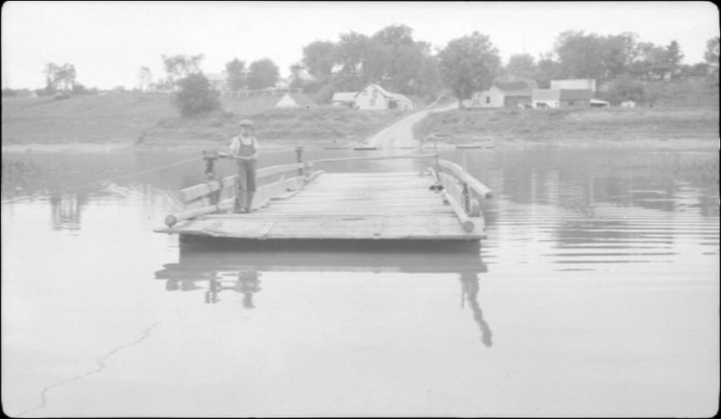 Les bateaux passeurs sur la rivière Yamaska à Saint-Aimé, comté de Richelieu, 1947, Archives nationales à Québec, Fonds Ministère de la Culture et des Communications, (03Q,E6,S7,SS1,D2,P39856), A. Gagnon.