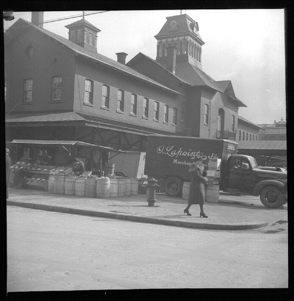 Marché Saint-Hyacinthe, 1941, Archives nationales à Québec, Fonds Ministère de la Culture et des Communications, (03Q,E6,S7,SS1,D2,P4510), J.M. Talbot.