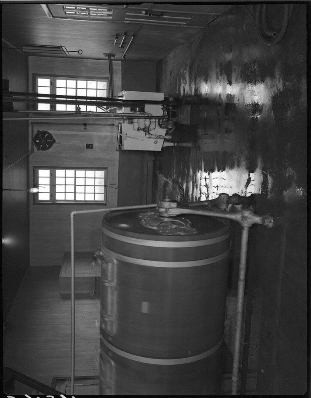 Intérieur de la fabrique de beurre à Saint-Guillaume, comté de Yamaska, 1941, Archives nationales à Québec, Fonds Ministère de la Culture et des Communications, (03Q,E6,S7,SS1,D2,P4545), Paul Carpentier.