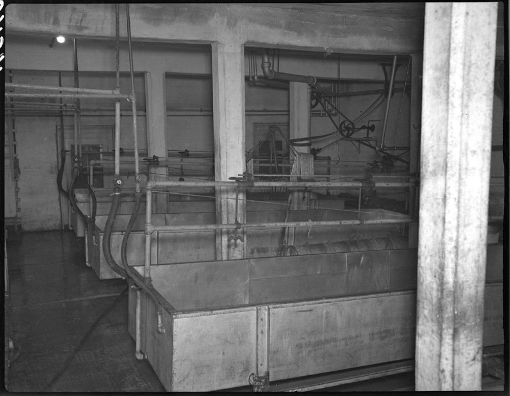 Intérieur de la fromagerie à Verchères et M. Dalphé, 1941, Archives nationales à Québec, Fonds Ministère de la Culture et des Communications, (03Q,E6,S7,SS1,D2,P4549), Paul Carpentier.