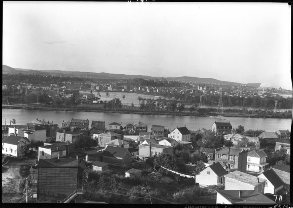 Vue de Shawinigan Falls, 1942, Archives nationales à Québec, Fonds Ministère de la Culture et des Communications, (03Q,E6,S7,SS1,D2,P460), Herménégilde Lavoie.