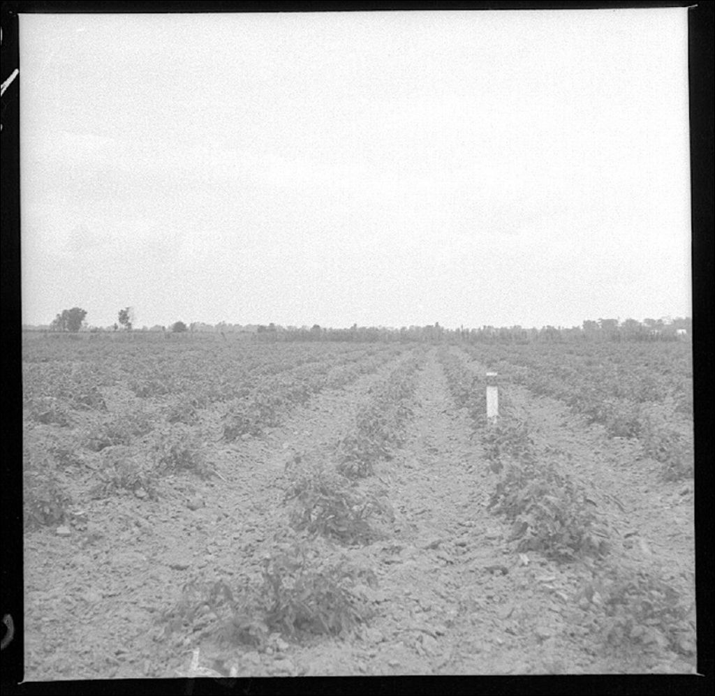 Un plant de tomates en début de croissance à Sainte-Martine, 1937, Archives nationales à Québec, Fonds Ministère de la Culture et des Communications, (03Q,E6,S7,SS1,D2,P4655), Maurice Lessard.