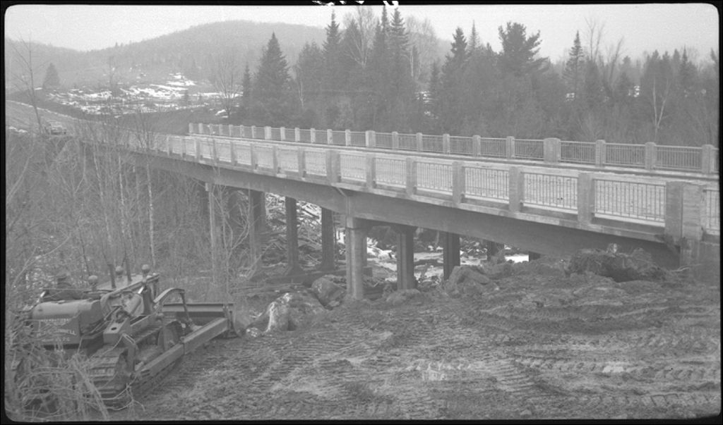 Pont sur la rivière aux Mulets à Sainte-Adèle, comté de Terrebonne, 1941, Archives nationales à Québec, Fonds Ministère de la Culture et des Communications, (03Q,E6,S7,SS1,D2,P5108), Louis-Philippe Poudrier.
