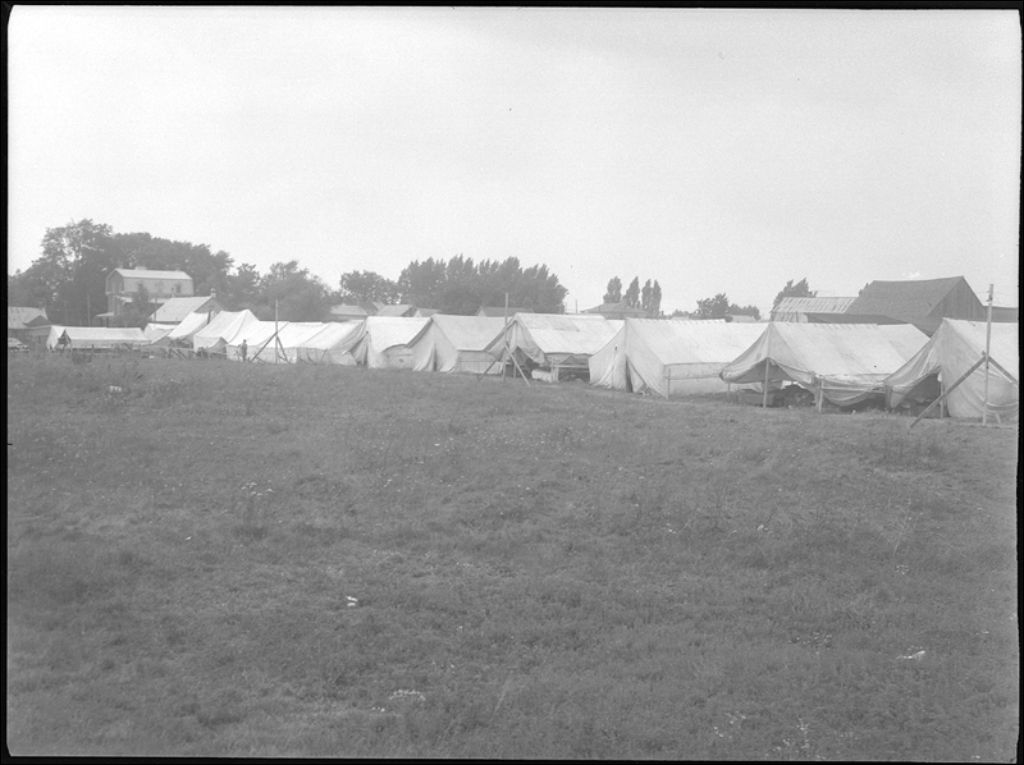 Campement à Sainte-Martine, 1942, Archives nationales à Québec, Fonds Ministère de la Culture et des Communications, (03Q,E6,S7,SS1,D2,P5209), J.M. Talbot.