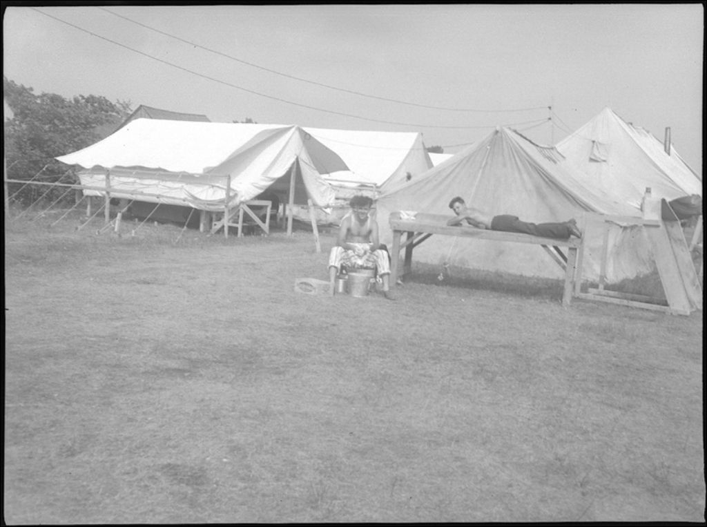 Campement à Sainte-Martine, 1942, Archives nationales à Québec, Fonds Ministère de la Culture et des Communications, (03Q,E6,S7,SS1,D2,P5212), J.M. Talbot.