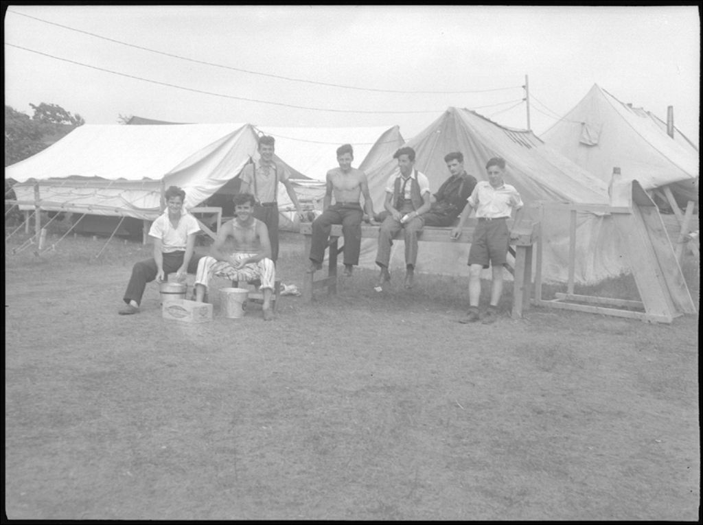 Campement à Sainte-Martine, 1942, Archives nationales à Québec, Fonds Ministère de la Culture et des Communications, (03Q,E6,S7,SS1,D2,P5242), J.M. Talbot.