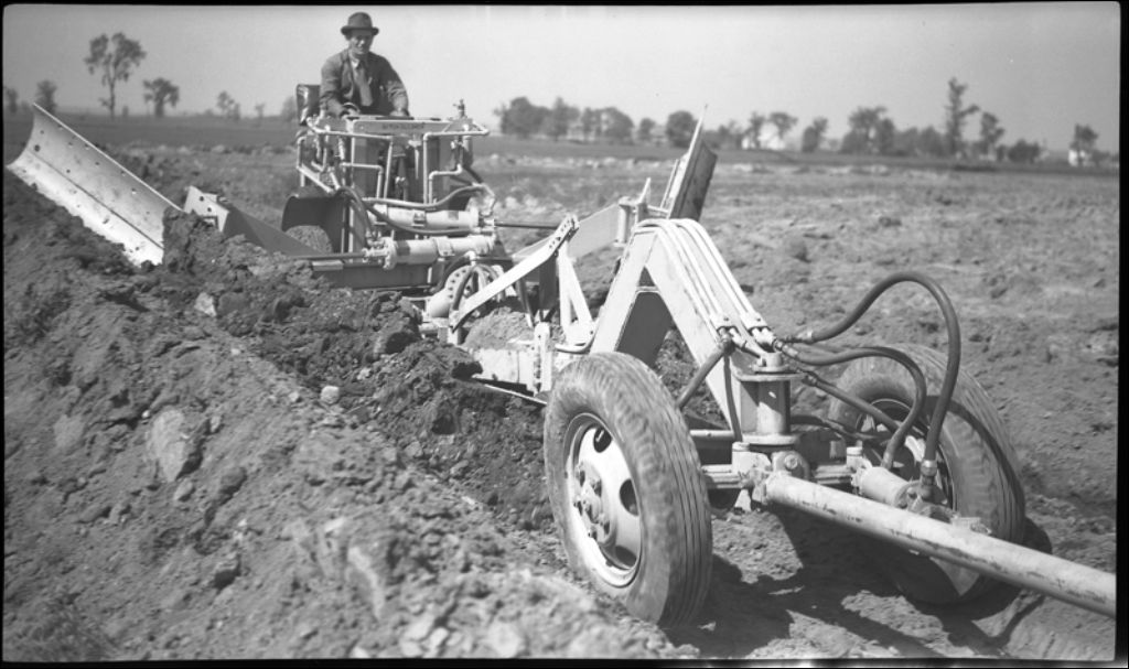 Travail de voirie à Saint-Bruno, vue de la machine, 1941, Archives nationales à Québec, Fonds Ministère de la Culture et des Communications, (03Q,E6,S7,SS1,D2,P543), David D. Clerk.