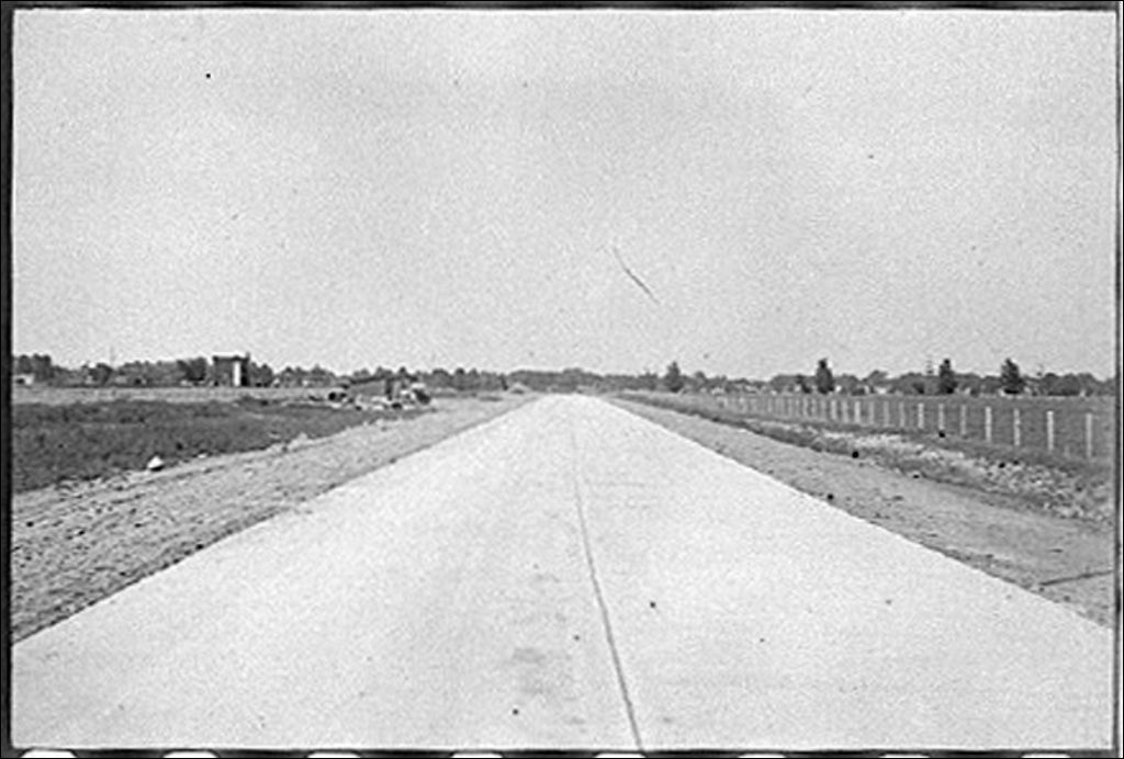 Revêtement de béton de ciment, voie Sir Wilfrid Laurier à Laprairie, 1941, Archives nationales à Québec, Fonds Ministère de la Culture et des Communications, (03Q,E6,S7,SS1,D2,P5459), Jean Langevin.