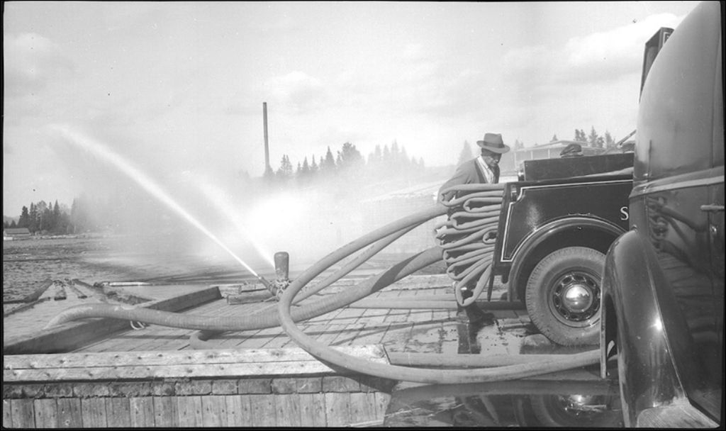 Incendie, épreuve d'une pompe à Saint-Donat, comté de Montcalm