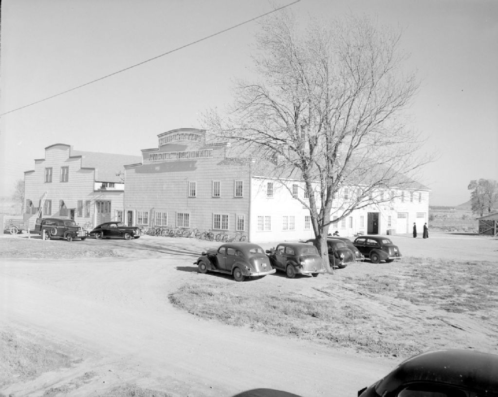 Bâtisse de la coopérative avicole à Saint-Damase, 1947, Archives nationales à Québec, Fonds Ministère de la Culture et des Communications, (03Q,E6,S7,SS1,D2,P60265), Omer Beaudoin.