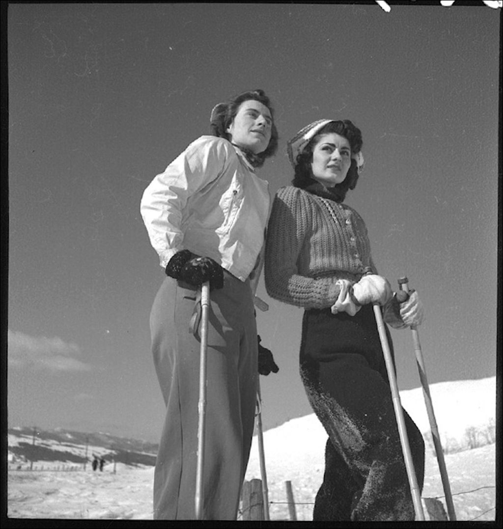 Skieuses à Baie-Saint-Paul, 1942, Archives nationales à Québec, Fonds Ministère de la Culture et des Communications, (03Q,E6,S7,SS1,D2,P6028), Herménégilde Lavoie.