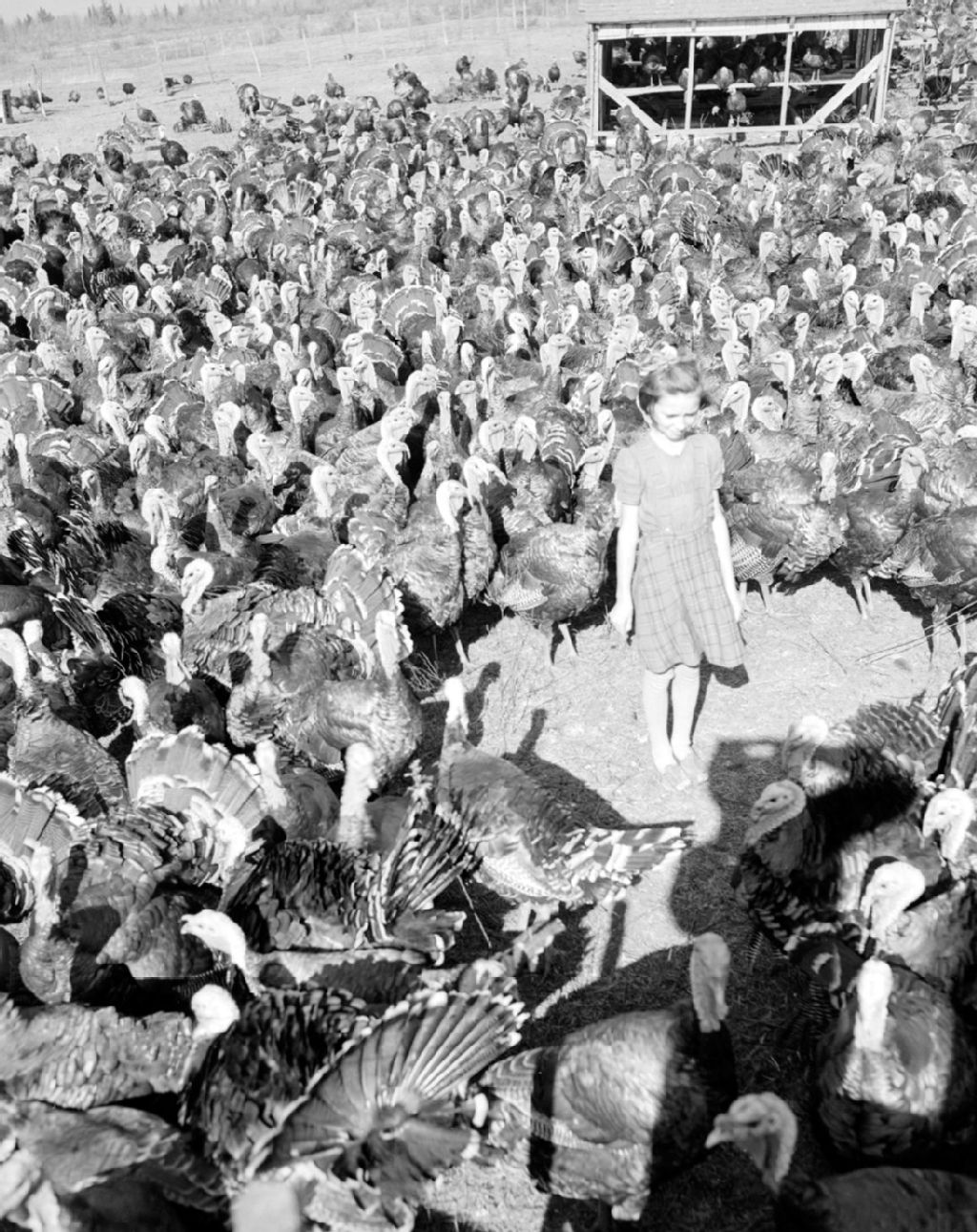 Troupeau de 2 600 dindes sur la ferme de R. Vadnais à Wickham, 1947, Archives nationales à Québec, Fonds Ministère de la Culture et des Communications, (03Q,E6,S7,SS1,D2,P60280), Omer Beaudoin.