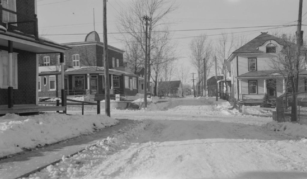 Intersection des rues sur la rive droite du pont à Crabtree Mills