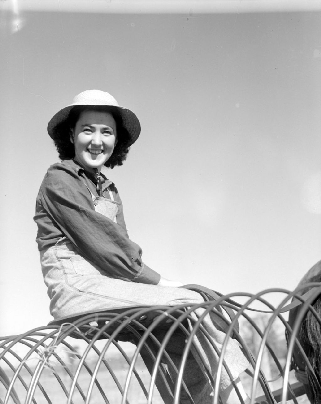 Mlle Beaumont, fille de Léger, au travail du foin à L'Ancienne-Lorette