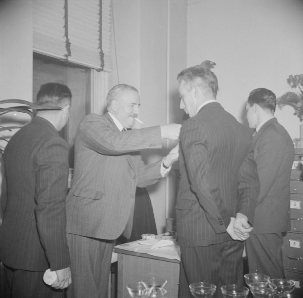 Le Dr Pouliot, ministre de Chasse et pêche, décore le garde-chasse Ovila Bolduc