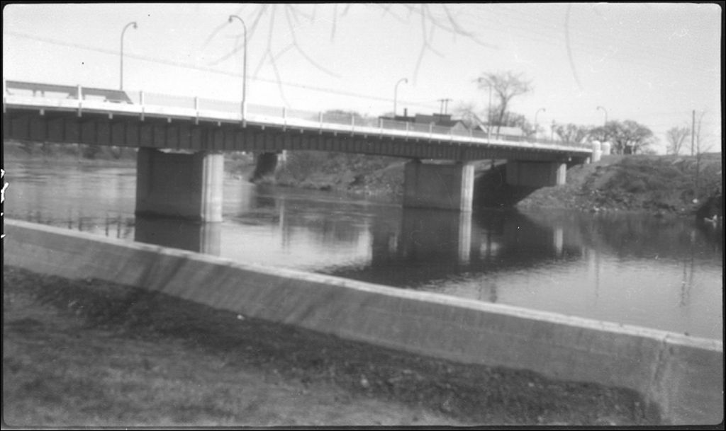 Pont de la Société sur la rivière Yamaska à Saint-Hyacinthe, 1942, Archives nationales à Québec, Fonds Ministère de la Culture et des Communications, (03Q,E6,S7,SS1,D2,P6170), L.P. Couture.