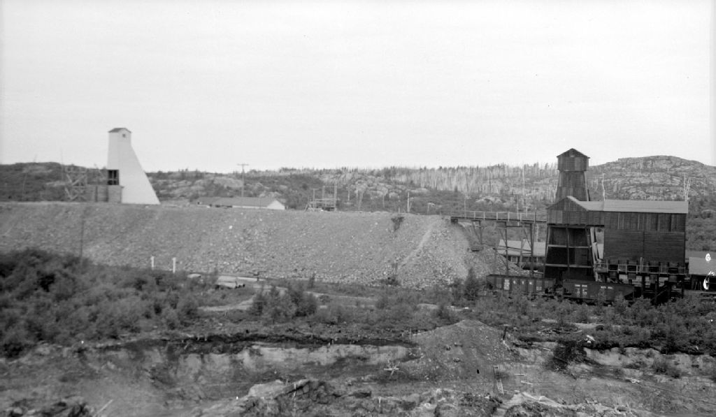 Waite section of Waite AMulet Mines Ltd, new and old shafts, glory-hole in foreground, Duprat