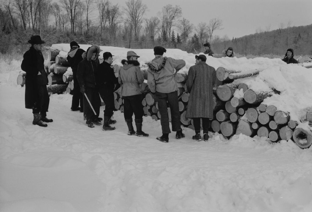 Pratique de mesurage des grumes à la scierie-école de Duchesnay, 1948, Archives nationales à Québec, Fonds Ministère de la Culture et des Communications, (03Q,E6,S7,SS1,D2,P61793), A. Linteau.