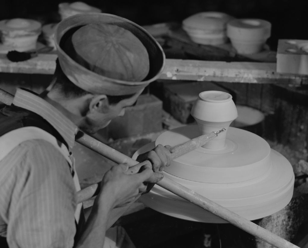 Fabrication d'un moule sur un tour mécanique à l'école de céramique de Saint-Joseph-de-Beauce