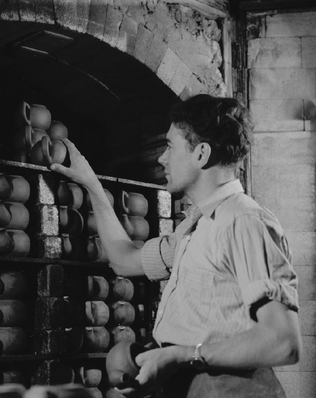 Théières en céramique à l'école de céramique de Saint-Joseph-de-Beauce, 1947, Archives nationales à Québec, Fonds Ministère de la Culture et des Communications, (03Q,E6,S7,SS1,D2,P61831), Omer Beaudoin.