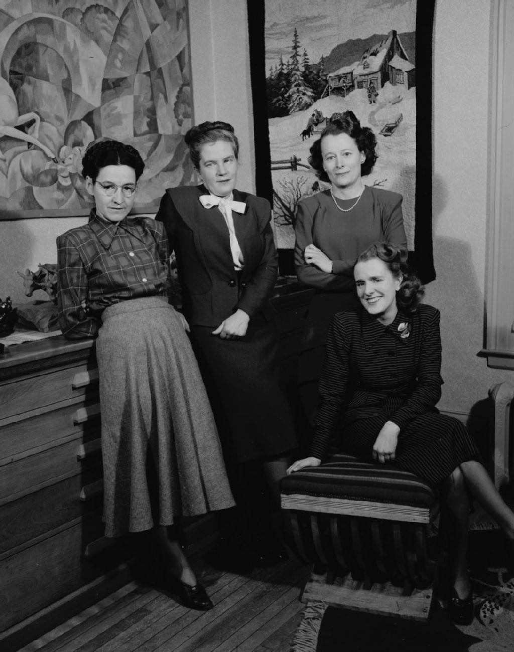 Dessinatrices de l'atelier des modistes à l'école des Arts Domestiques, 1948, Archives nationales à Québec, Fonds Ministère de la Culture et des Communications, (03Q,E6,S7,SS1,D2,P61842), Omer Beaudoin.