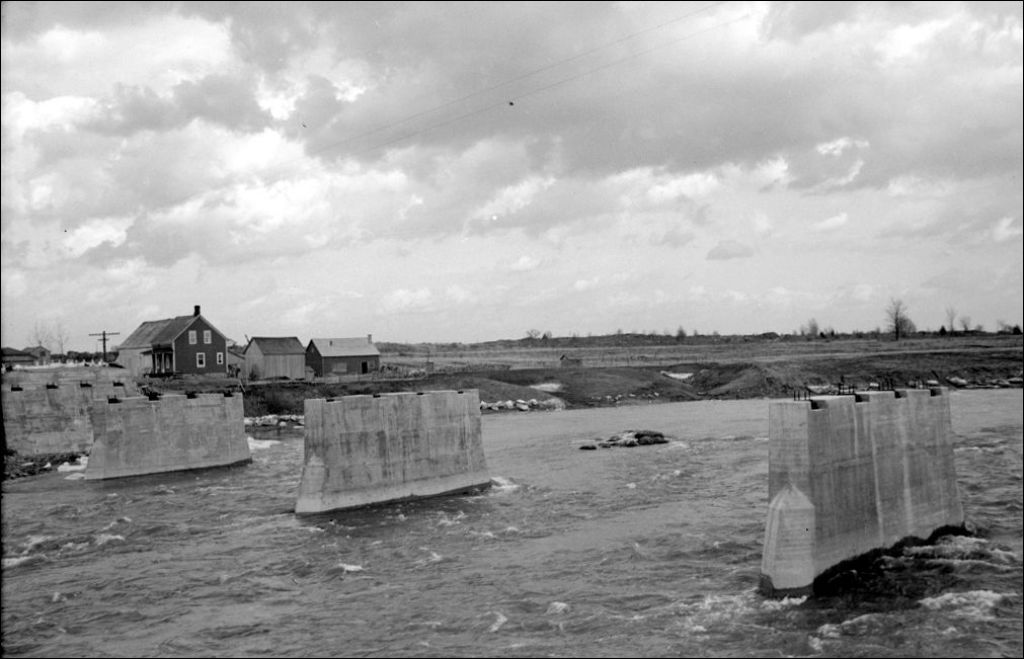 Les piliers du pont Larocque sur la rivière Nicolet à Notre-Dame-du-Bon-Conseil