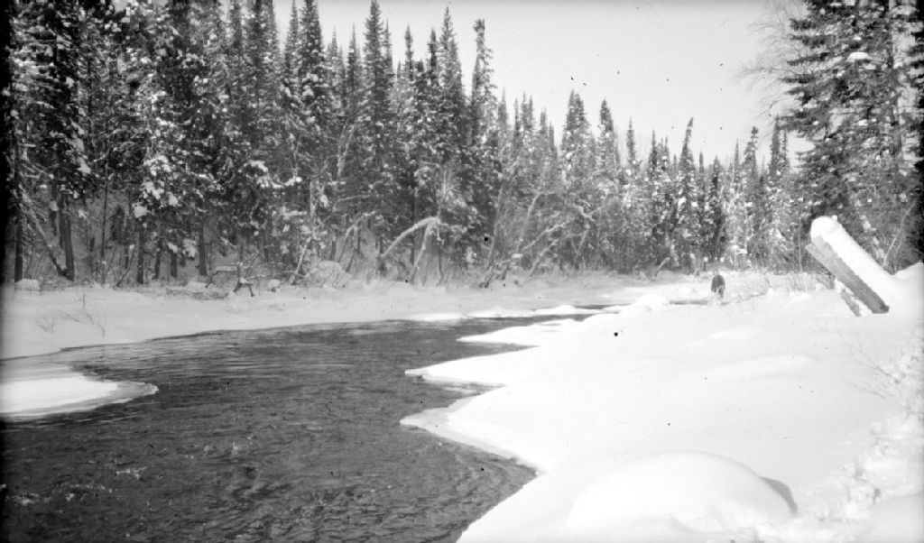 Traverse de la rivière O'Sullivan. Vue du côté sud-est pris à 150 pieds sud. Abitibi, 1948, Archives nationales à Québec, Fonds Ministère de la Culture et des Communications, (03Q,E6,S7,SS1,D2,P62137), Richer, A.-N.