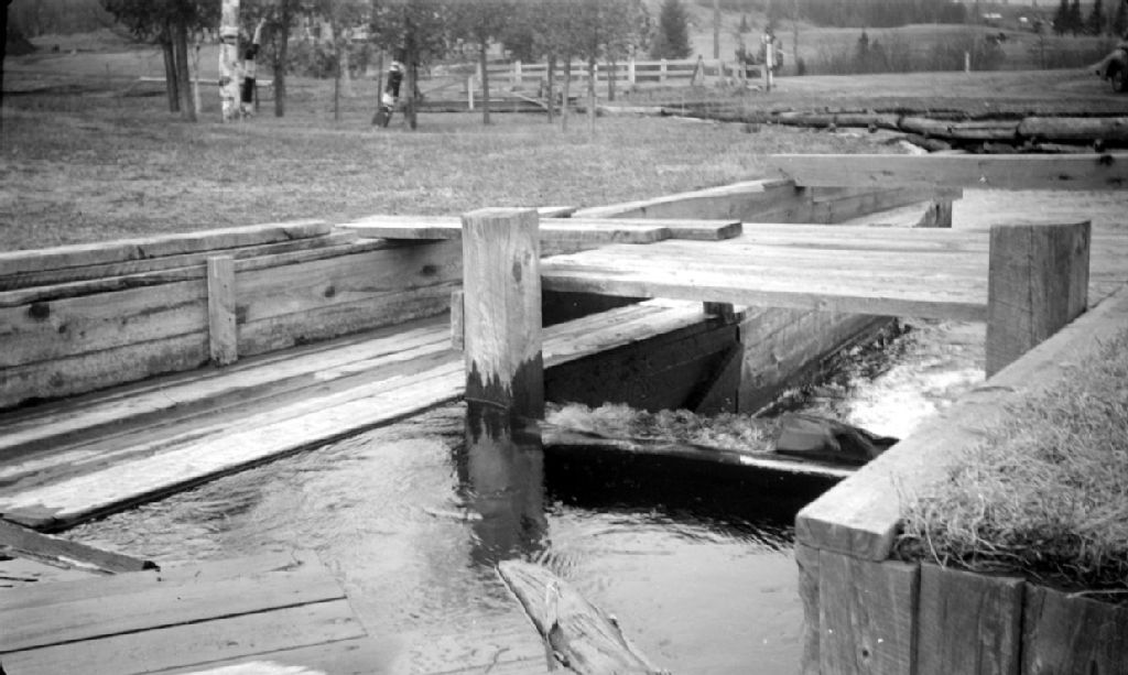 Le barrage d'emmagasinement montrant les deux pertuis au lac Ouimet à Saint-Jovite