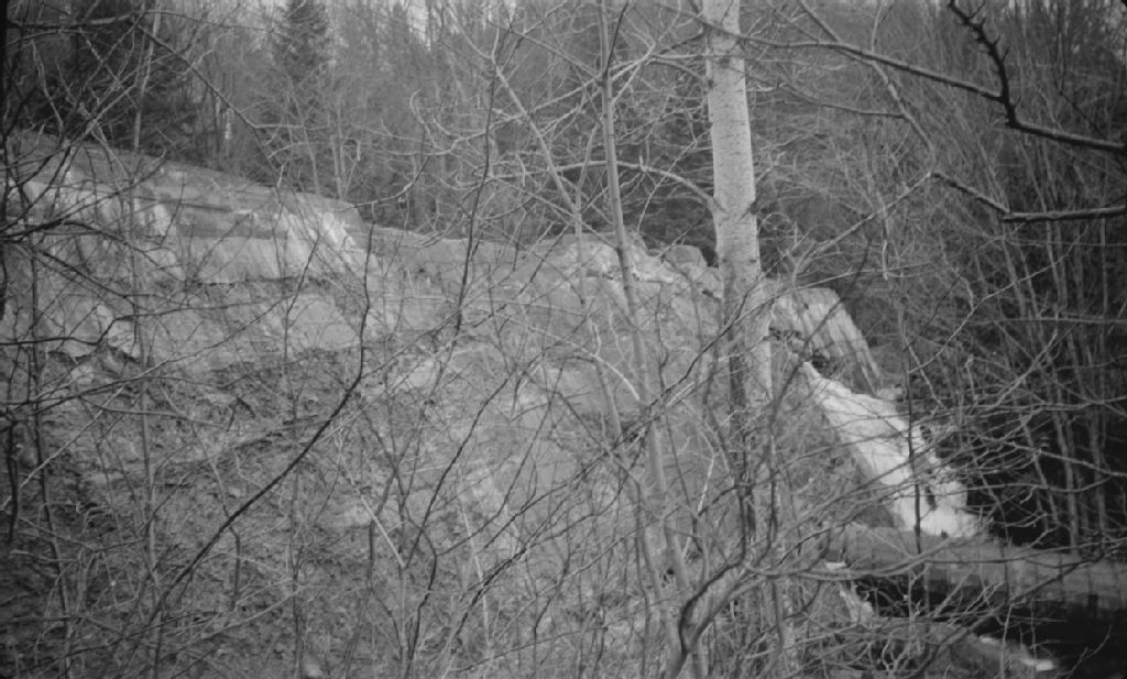 Vue d'ensemble du barrage au moulin à Saint-Jovite, 1948, Archives nationales à Québec, Fonds Ministère de la Culture et des Communications, (03Q,E6,S7,SS1,D2,P62268), G. Poitras.