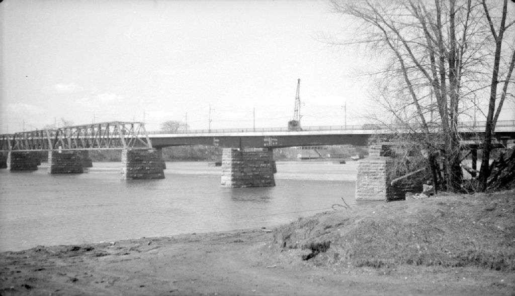 Démolition des vieux ponts à Trois-Rivières, 1948, Archives nationales à Québec, Fonds Ministère de la Culture et des Communications, (03Q,E6,S7,SS1,D2,P62311), J.M. Reid.