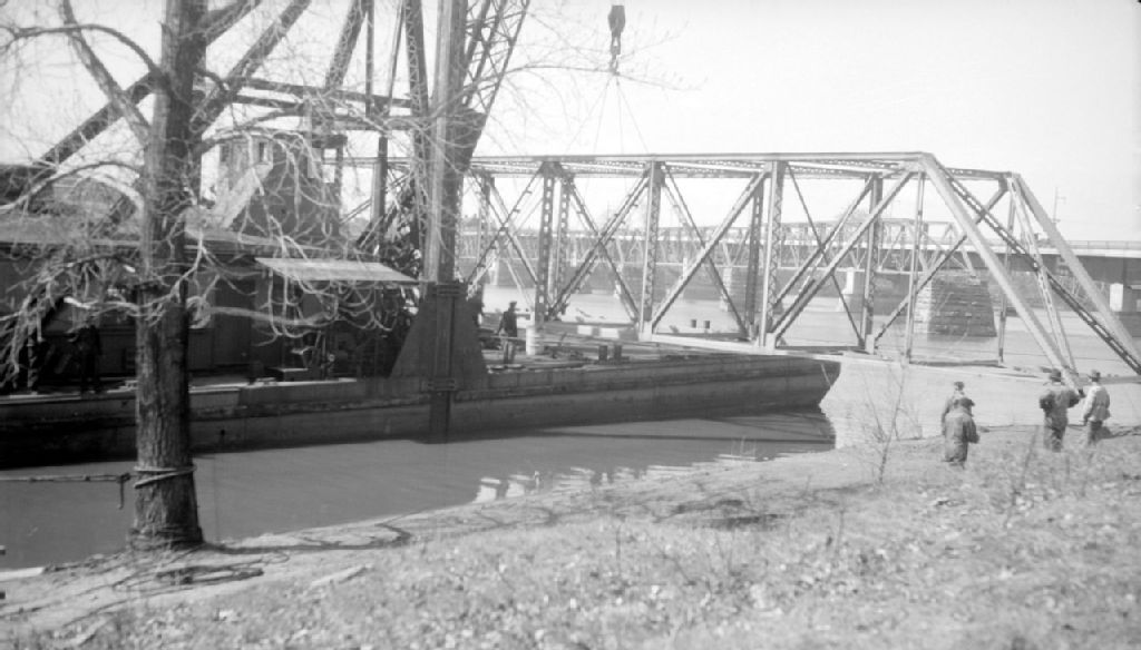 Démolition des vieux ponts à Trois-Rivières, 1948, Archives nationales à Québec, Fonds Ministère de la Culture et des Communications, (03Q,E6,S7,SS1,D2,P62312), J.M. Reid.
