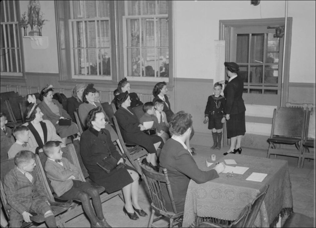 On tient compte de l'âge et de la taille des enfants à la clinique de l'Unité sanitaire locale. Trois-Rivières, Comté de Saint-Maurice