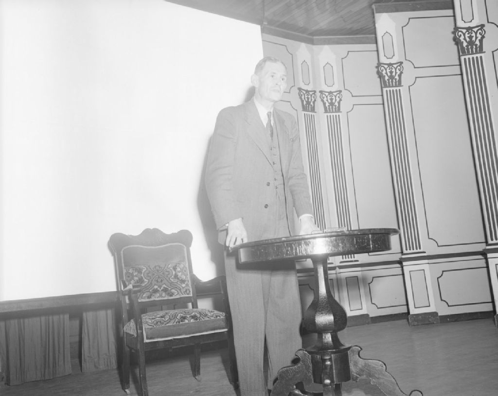 Un conférencier, 1948, Archives nationales à Québec, Fonds Ministère de la Culture et des Communications, (03Q,E6,S7,SS1,D2,P62666), Jean-Charles Magnan.