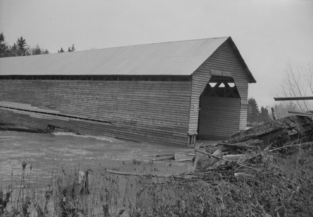 Inondation du printemps à Nouvelle-Ouest. Pont Kearney sur la rivière Nouvelle à Miguasha