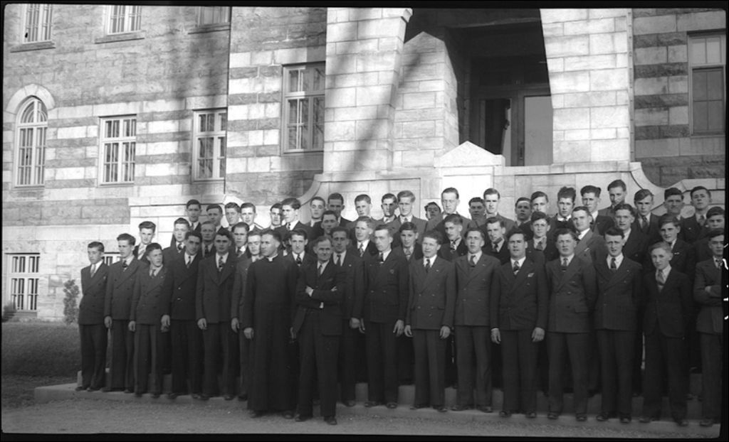 Publicité: élèves de l'école moyenne de Nicolet, 1942, Archives nationales à Québec, Fonds Ministère de la Culture et des Communications, (03Q,E6,S7,SS1,D2,P6341), François Fleury.